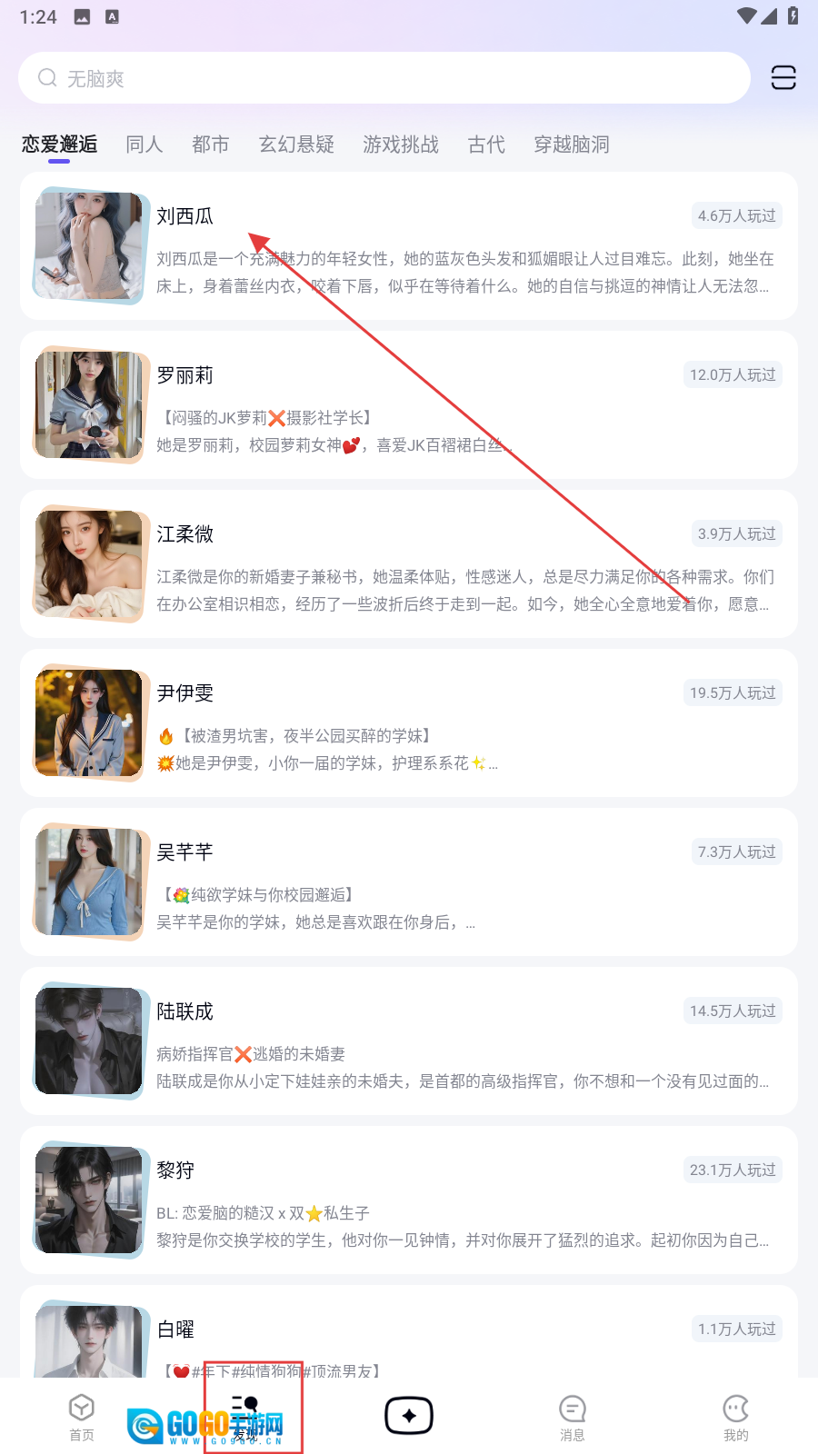 2、切换至【发现】页面,浏览角色列表,点击感兴趣的角色进入。