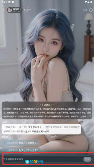 3、在角色对话页面,可选择建议回复内容,也能登录后自定义内容,点击【发送】按钮进行互动。