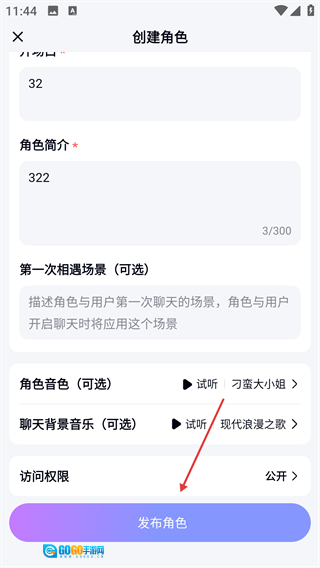 3、信息填写完毕后,点击底部的【发布角色】按钮,提交角色创建的申请。