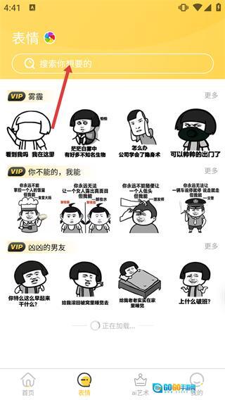 2、切换至【表情】页面,借助顶部搜索栏查找表情包,该页面会展示带有【VIP】标识的表情,点击分类旁边的“更多”按钮即可查看更多内容。