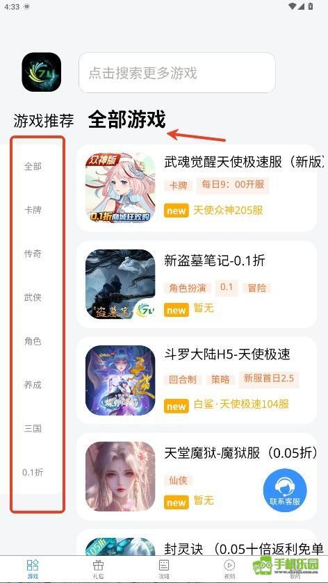 3、按类型浏览(如仙侠、卡牌、策略、BT服等),快速筛选喜好游戏。