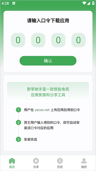 1、首先电视和手机上都安装了对应的野草助手,然后打开手机上的输入口令