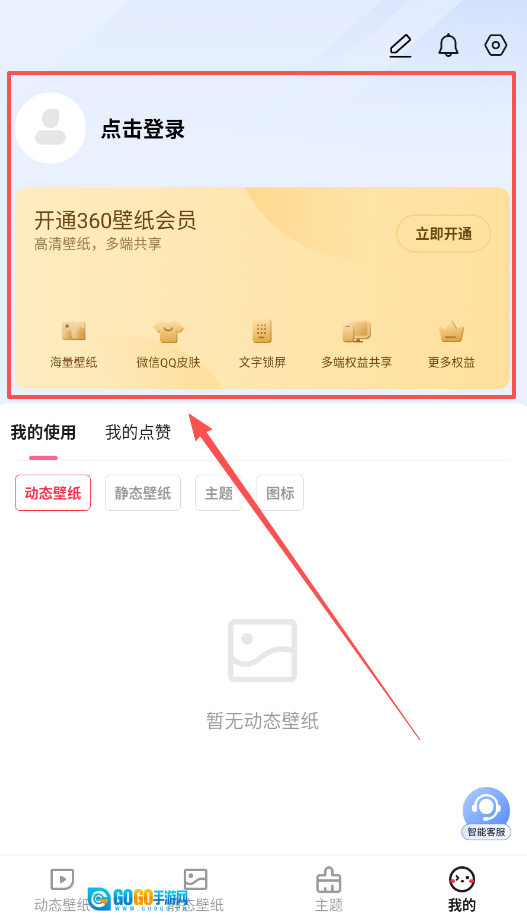 首先点击登录并开通360壁纸会员,开通后可享受高清壁纸多端共享的权益,随后即可浏览海量壁纸库。