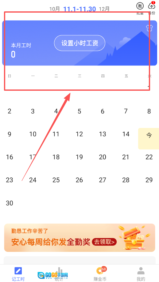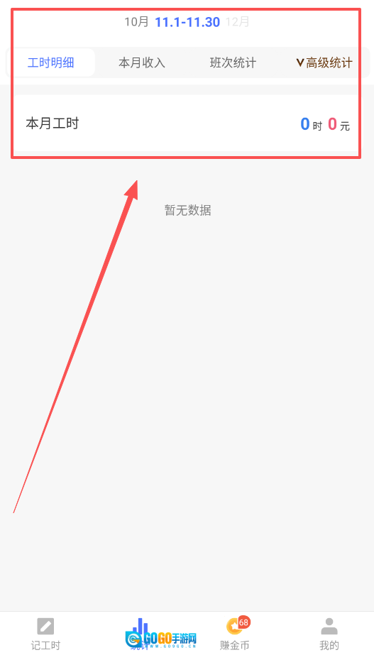 3、切换到统计页面,你可以查看本月的工时明细与收入汇总,这里会展示你的总工时以及相应工资,助力你了解自身的工作模式。