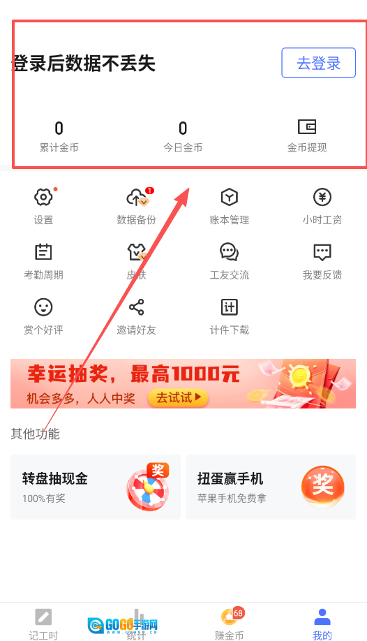 1、先完成登录,这样你的工时数据就能在云端保存,不会丢失;之后在设置里把考勤周期和小时工资配置好。