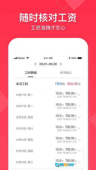 【1】这款软件具备记工时与查工资的功能,所有数据会依据用户的记录实时更新并呈现。