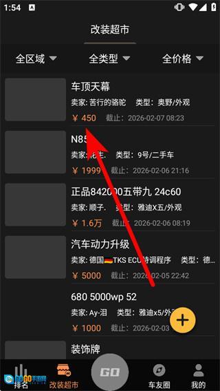 3、在改装超市页面浏览商品,点击目标商品卡片进入产品详情页面。
