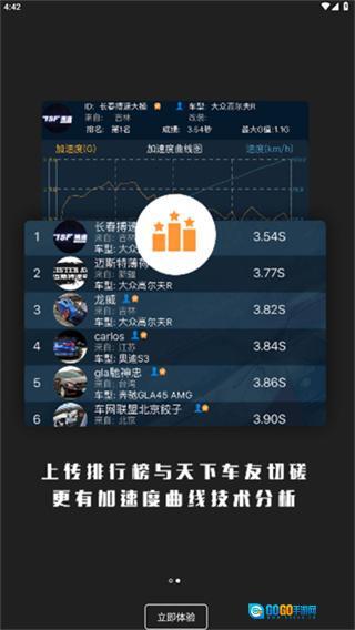 4、构建社交互动竞技生态,打造专属的汽车性能社交圈。用户既能分享测试成绩、探讨改装方案,也能结识志同道合的车友;平台支持线上赛事的创建与参与,全面适配各类汽车爱好者的需求。