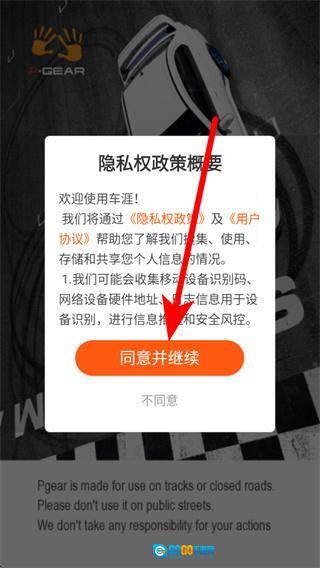 1、打开车涯应用,待弹出弹窗后,点击“同意并继续”按钮,即可进入主界面。