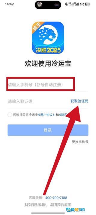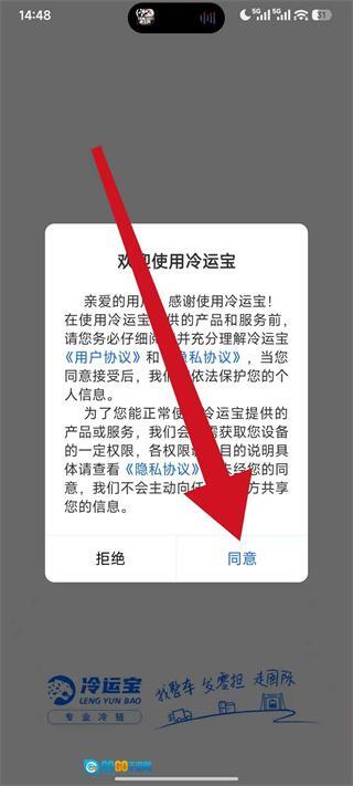 1、启动冷运宝应用,待协议弹窗出现后,点击“同意”按钮,即可进入账号登录界面。