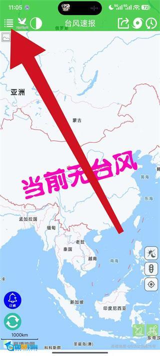 1、打开台风速报应用,点击页面左上角的“更多功能”按钮,随即弹出更多功能菜单。