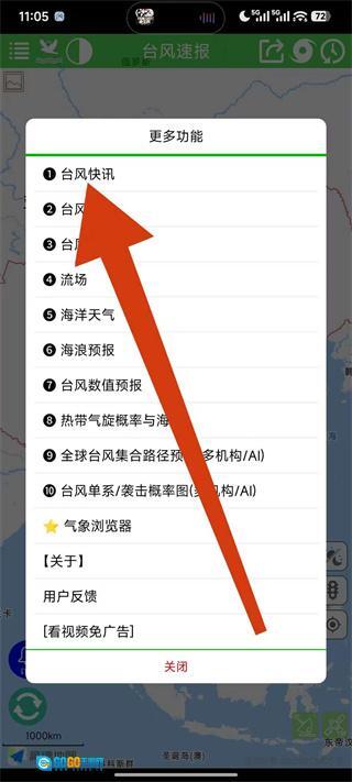2、在更多功能菜单里,点击台风快讯选项,即可进入台风快讯的详情页面。