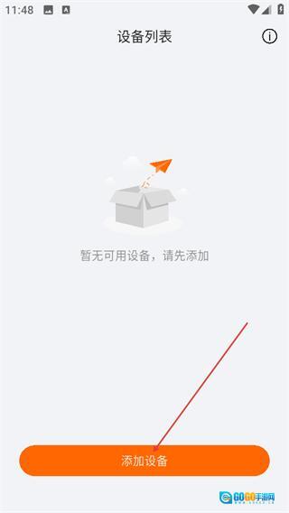 2、进入设备列表界面,若显示暂无可用设备,请先添加,点击下方的添加设备按钮,启动设备添加流程。