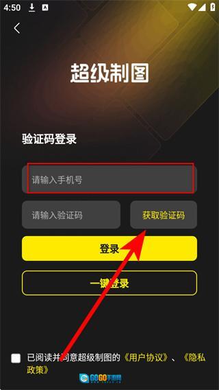 3、在手机号输入框内填写需登录的手机号码,随后点击获取验证码按钮。