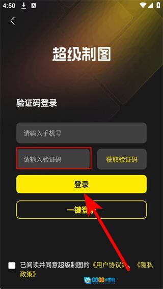4、把收到的短信验证码输入到验证码框中,勾选相关协议后点击登录按钮,就能完成账号登录操作。