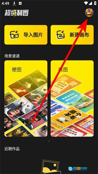 1、启动超级制图应用,在首页界面点击右上角的个人头像图标,即可进入个人中心页面。