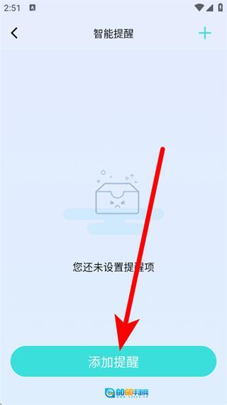 3、在智能提醒页面,点击添加提醒,进入添加时间页面。