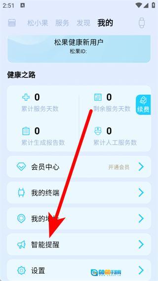 2、在我的页面,点击智能提醒,进入智能提醒页面。