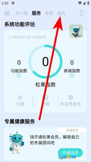 1、在松果健康首页,点击顶部我的,进入个人页面。