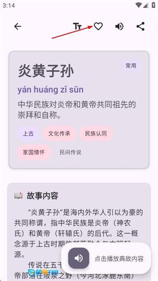 4、在详情页面,可通过对应功能按钮收藏典故内容。