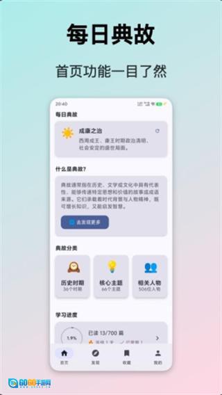 典故大全是一款专注于国学文化知识教育与历史典故阅读服务的综合性应用,该平台汇集了海量精选的历史典故与经典故事,致力于让用户轻松发现并深入了解丰富多彩的中华文化精髓,通过其智能化的分类与检索工具,用户可以便捷地按历史时期、核心主题、关联人物及故事类型等维度,系统化地探索涵盖各个领域的典故资源。