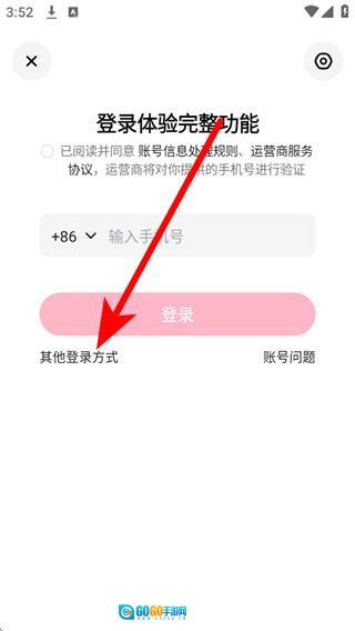 3、在该页面点击其他登录方式选项,弹出登录方式选择菜单。