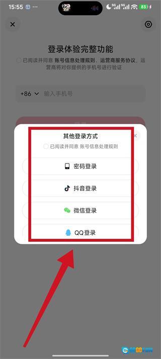 4、选择对应的登录方式,勾选协议后,按照提示完成授权,即可完成账号登录。