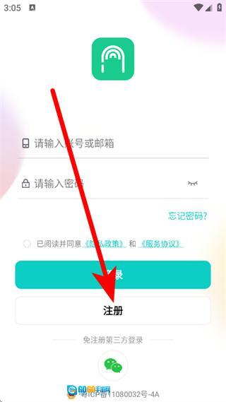 2、在摩尔智慧登录页面,点击注册,进入手机注册页面。