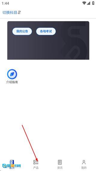 进入易考宝典后,点击底部的“产品”选项,即可进入产品页面。