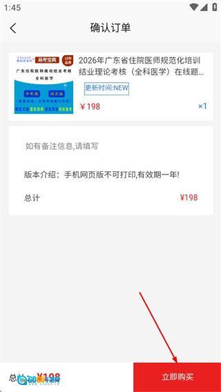 4、进入确认订单页面后,在核对并确认相关信息无误后,点击“立即购买”按钮,就能完成这份试卷的购买流程了。