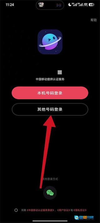 2、在登录方式选择页面,点击其他号码登录,进入手机号码登录页面。
