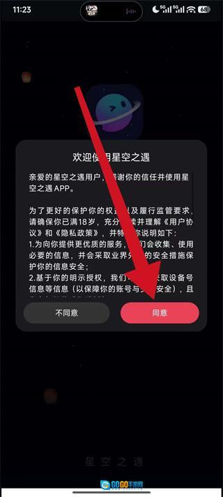 1、打开星空之遇,弹出弹窗后,点击同意,进入登录方式选择页面。