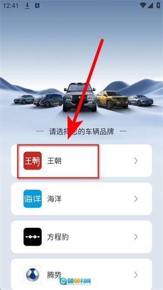 1、打开比亚迪云服务,在车辆品牌选择页面,点击车辆品牌,进入王朝品牌对应的车型页面。