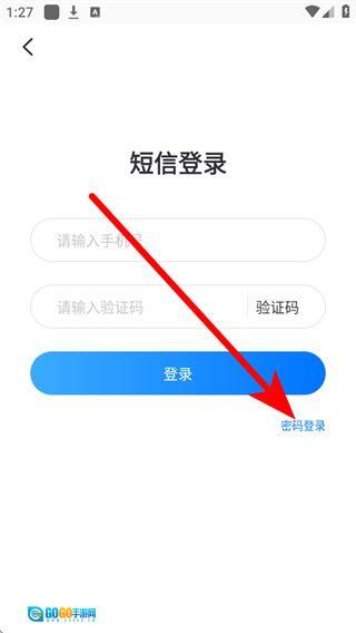 4、在短信登录页面,点击右下角的密码登录,进入密码登录页面。