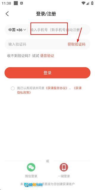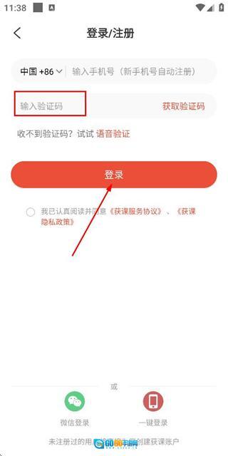 2、在登录页面填写手机号,勾选协议后,点击获取验证码。