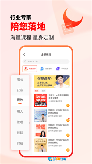 获课是专注企业管理培训的知识付费在线教育平台,秉持让知识成为力量,让知识创造财富的核心理念,整合行业头部名师资源、孵化优质知识IP、搭建全媒体运营矩阵,构建覆盖企业管理、资本运作等六大模块的课程体系,为个人学习者与企业用户提供定制化成长路径,助力知识高效转化为实战能力与商业价值。