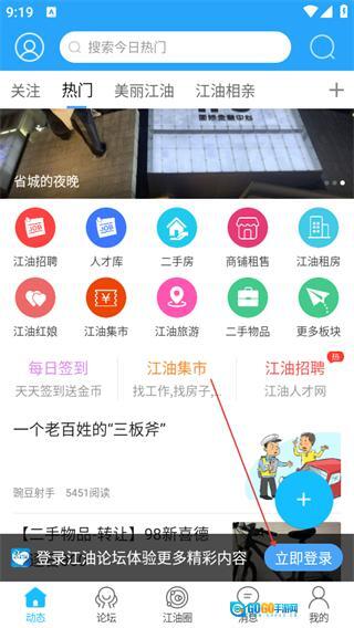 1、进入江油论坛后,点击立即登录按钮,可进入江油论坛登录选择页面。