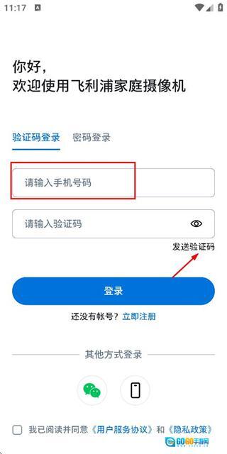 2、在登录页面输入手机号,勾选相关协议后,点击发送验证码按钮。