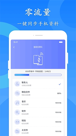 2、极速秒传-1分钟闪电换机,传输速度是蓝牙的50倍,秒传音乐、隐私文件、电影、短视频