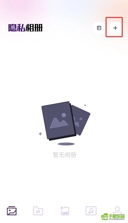 2、隐私相册支持加密存储,点击右上角"+"可导入手机图片(需授权相册权限)。