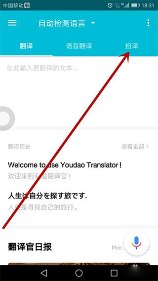 1、在本站完成安装后点击打开进入,找到页面右上方的“拍译”功能,点击进入即可。