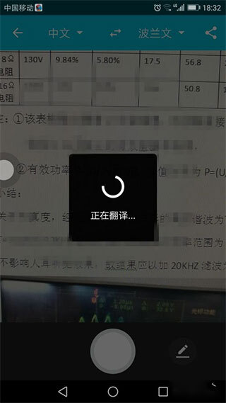 5、我在这里以中文翻译成波兰文为例,点击拍照按钮,系统便会自动完成翻译。