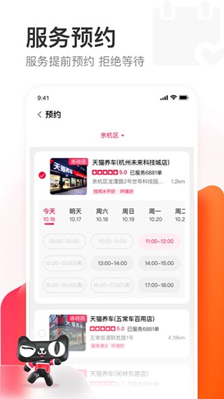 天猫养车是一个为车主提供爱车养护服务的平台,用户能在这里享受到便捷高效的服务,比如提前预约车辆维修、保养等项目。通过精准定位功能,用户可以快速查询到附近的门店,从而及时获取全面的汽车服务,有需要的用户不妨来体验一下!