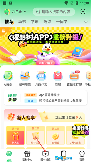 1、在【发现】页,点击底部【图书增值】。