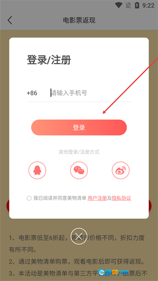 4、弹出【登录/注册】弹窗,完成登录,进行折现。