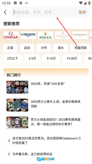 5、筛选逻辑:搭建十六维度检索系统,可实现材质透光率的对比分析以及表耳弧线的可视化筛选功能,助力用户精准锁定心仪腕表。