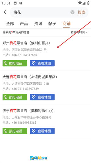 3、搜索完成后,切换到“商铺”标签页,点击对应的零售店。