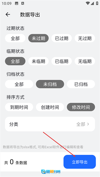 4、在确认好筛选条件之后,点击页面底部的【立即导出】按钮,即可启动数据导出流程,导出的数据会以xlsx格式生成。