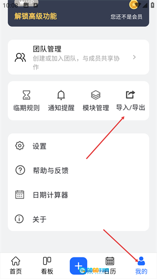1、打开【我的】页面,在功能模块区域找到【导入/导出】选项并点击。