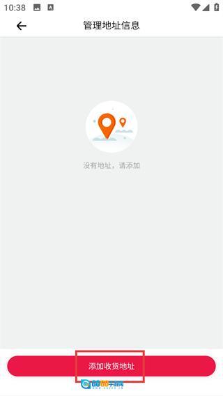 3、进入【管理地址信息】页面,若当前无地址,点击底部的【添加收货地址】按钮,可进入地址填写界面。